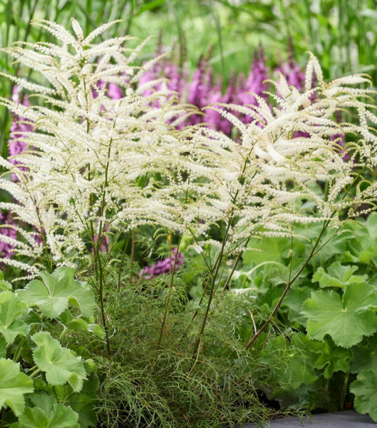 Создайте в своем саду мечтательную дымку из арункуса ‘Silver Filigree’, напоминающую облако. Кружевные листья, появляющиеся весной, — прекрасны, но пена белых цветочных перьев, увенчивающая их в начале и середине лета, совершенно неотразима. Выносливый многолетник арункус ‘Silver Filigree’ легко выращивать и ухаживать за ним, он прекрасно себя чувствует на участках с влажной почвой. Его часто называют козьей бородой, и он с радостью приживется на своем месте, возвращаясь каждый год, чтобы стать дымчатым украшением сада, каждый раз обильнее, чем предыдущий год.