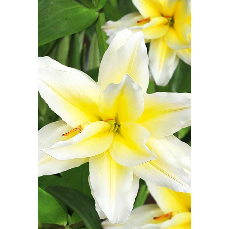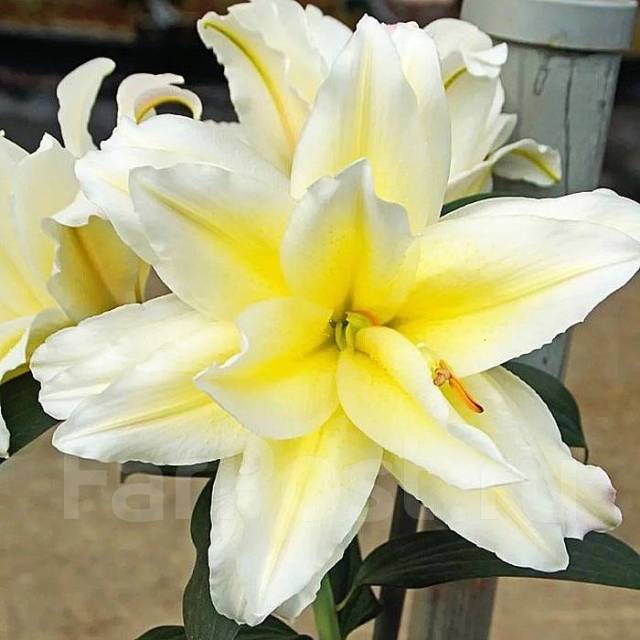 Эта представительница махровых восточный лилий отличается красивыми крупными цветками белого цвета с желтым центром и насыщенным ароматом.