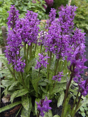 яйцевидно- цилиндрический, густой, многоцветковый, до 9 см длины. Прицветники узколанцетные, короче цветков. Цветки бледно-розовато-лиловые, губа с мелкими фиолетовыми пятнышками. Наружные листочки околоцветника ланцетные, туповатые, боковые — до 9 мм длины, неравнобокие, средний — до 8 мм длины; 2 листочка внутреннего круга почти равны среднему наружному, ланцетные, неравнобокие. Губа на конце коротко трехлопастная, со средней лопастью гораздо более маленькой и узкой, чем боковые, зубчиковидной. Цветет в конце июня — июле. Темные пятна на листьях взрослых растений лучше развиты в начале вегетации.