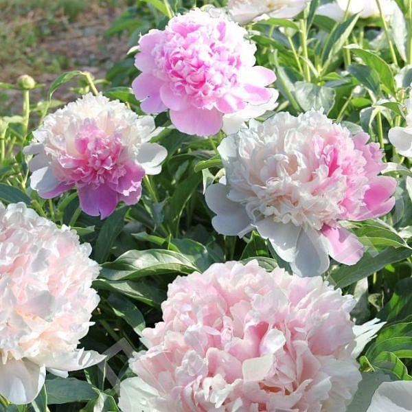 Стебли прямые. Куст высотой 70 см, на кусте одновременно бывают белые и розовые цветки.