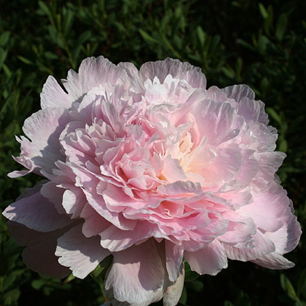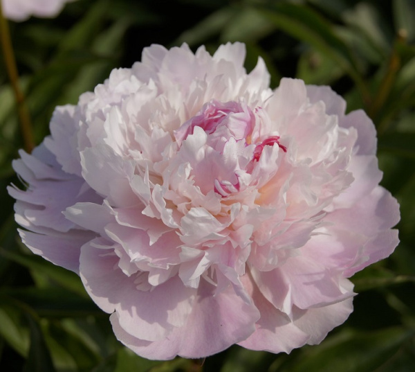 Цветок роскошный, махровый, нежно-розово-сиреневый с малиновыми вкраплениями и сливочно-желтыми иенями у основания лепестков, диаметром 14 см.