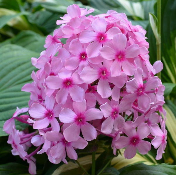 Светло-розовый с пурпурным центром.