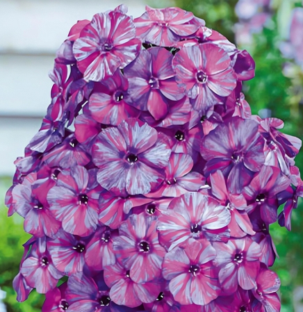 Цветки диаметром 4,0-4,3 см, изменчивой окраски, меняют цвет в течение дня с оттенков фиолетового с синими полосками на розовый. Высота 100-120см. Зона 3