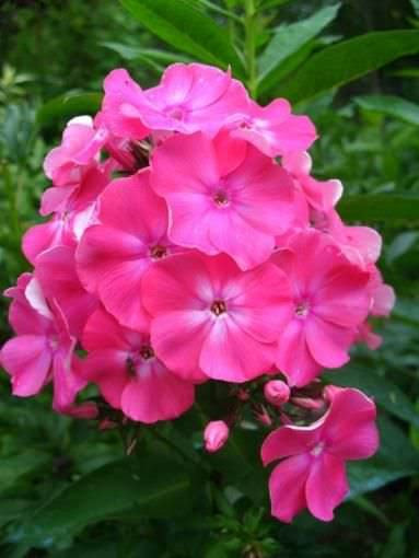 Цветки диаметром 3,8-4 см, яркие, малиново-розовые, с фиолетовым колечком в середине цветка.