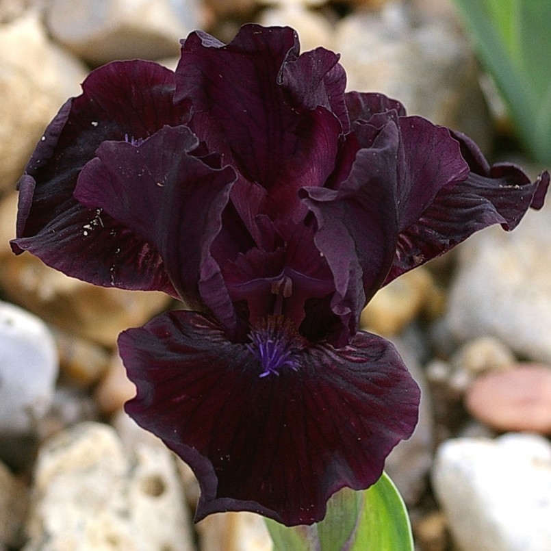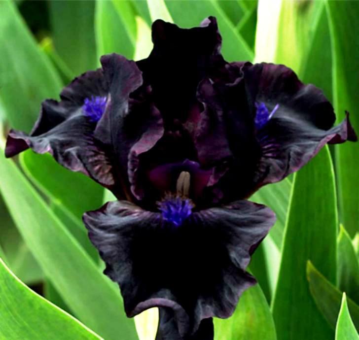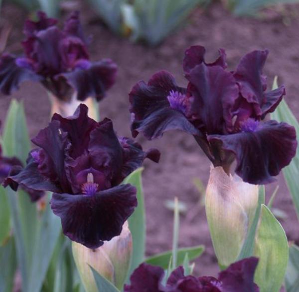 Стандарты – темно-бордовые, фолы – бархатистые, очень темные, почти черные, бородка – темно-фиолетовая.