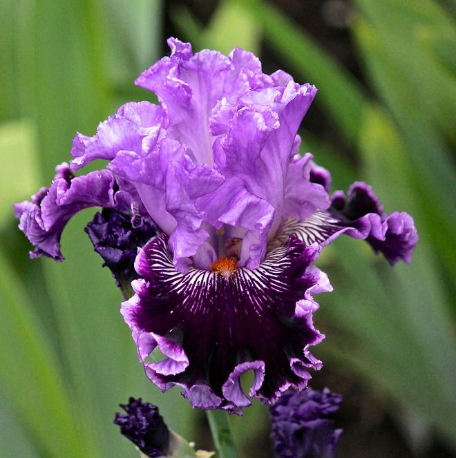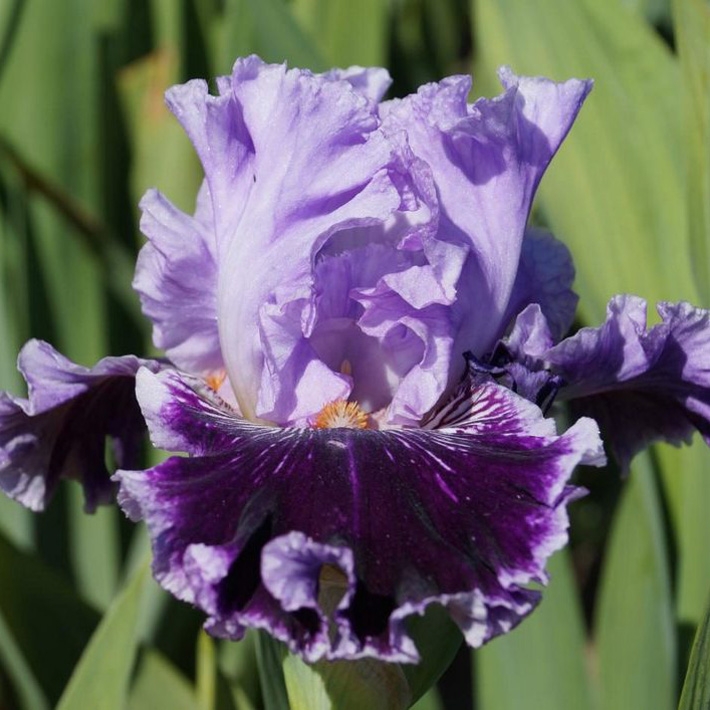 Стандарты – лавандово-лиловые. Фолы – густо фиолетовые с каймой цвета стандартов. У бородок обильное белое жилкование. Сильно гофрированный, парящий.