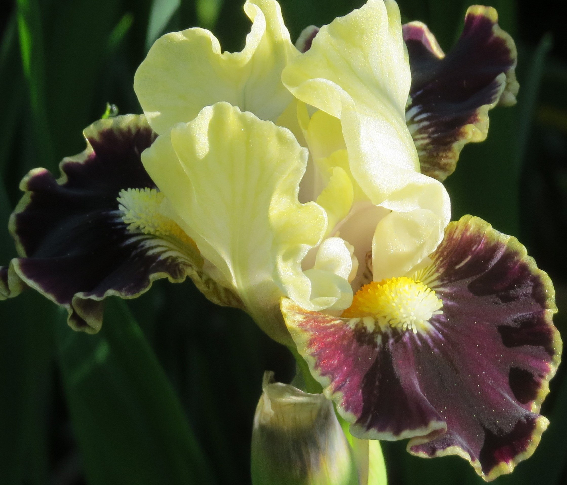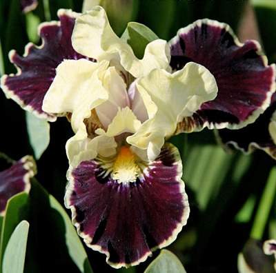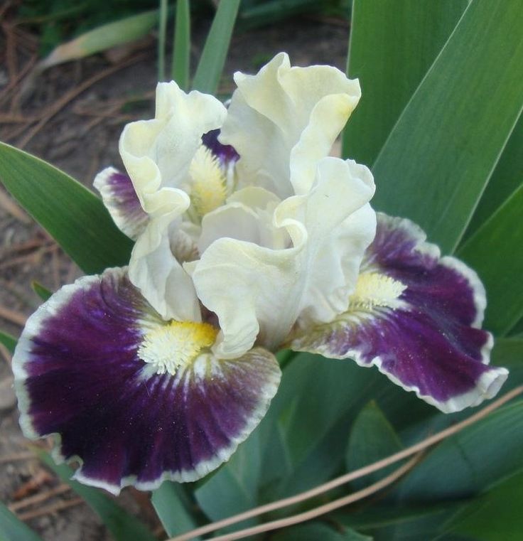 Стандарты — устрично-кремовые. Фолы — цвета перезрелой шелковицы, вокруг бородки кремовые перья. Кремовая тонкая окантовка по краю. Бородка — желто-оранжевая и кремовая. Гофрированный!