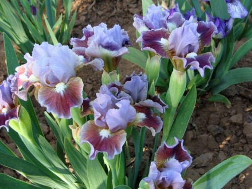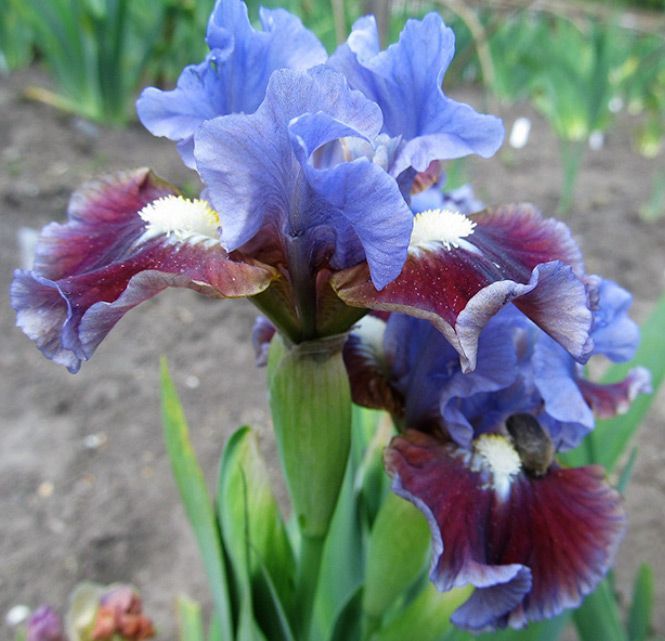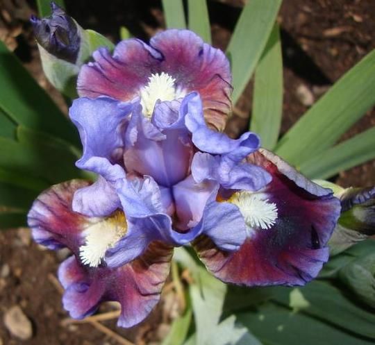 Фолы — красно-фиолетовые с каймой цвета стандартов и ярко-выраженными белыми лучиками у белой бородки.