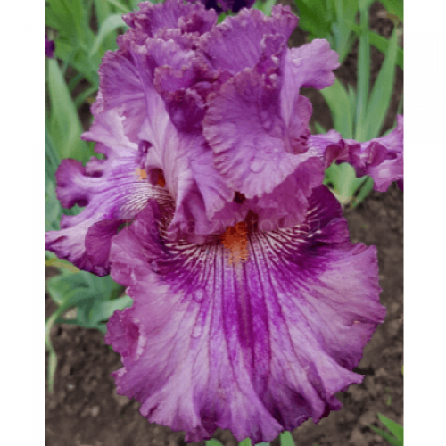 Sutton, 2011 Стандарты – устрично-фиолетовые. Фолы – цвета стандартов с ярко-сливовыми лучами от оснований. Бородка – кирпично-оранжевая. Высота цветоноса – 81 см Период цветения – среднепоздний. Крупный, кружевной и гофрированный!