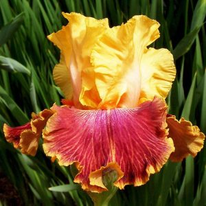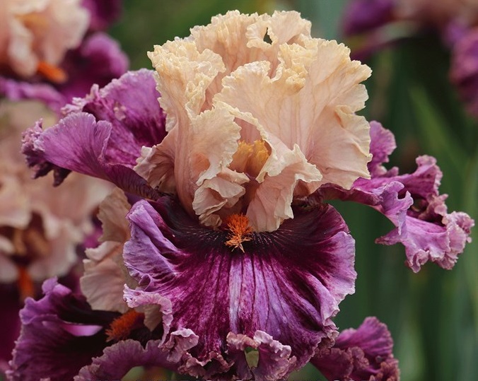 Johnson, 2018 Светло-розовые стандарты. Насыщенный розовый цвет орхидеи становится темнее вокруг бородки и ближе к концу лепестков. Бороды цвета мандарина. Цветоносы с 9 бутонами.