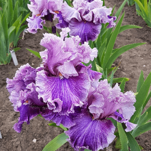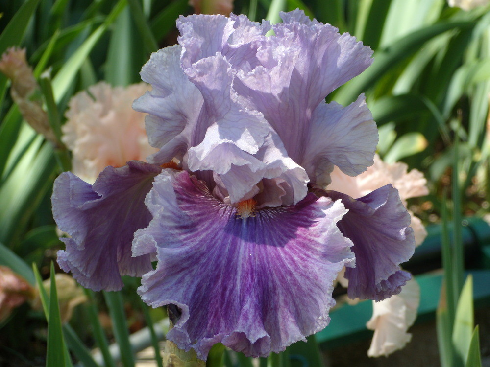 Фолы — пастельно-лиловые, плечи ярко-пурпурные, от бородки вниз по центру — яркий сине-фиолетовый луч.