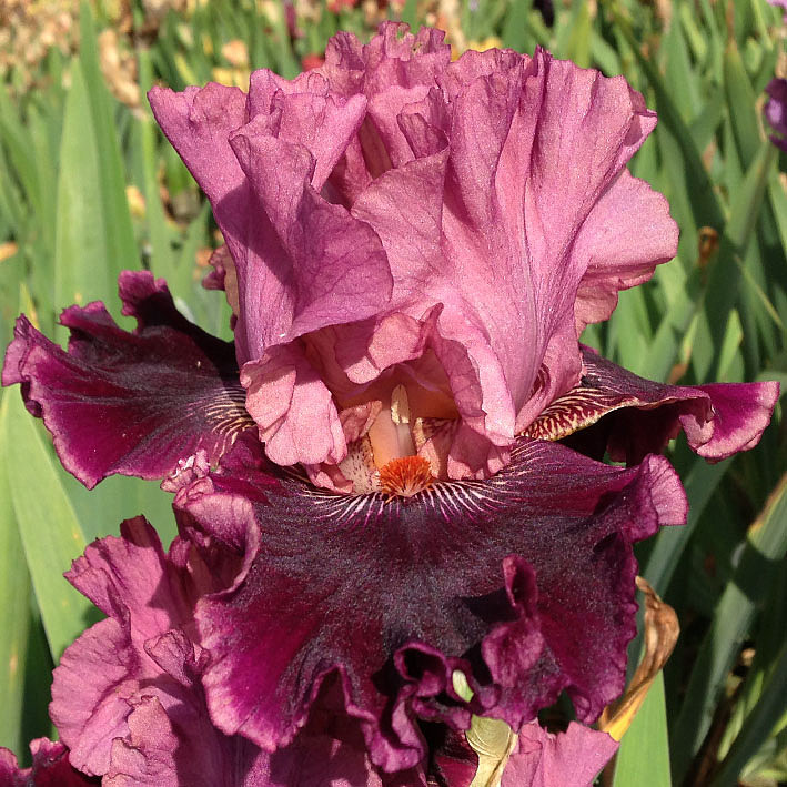 Фолы — темно-вишневые, бархатные с каймой цвета стандартов и светлым красивым жилкованием у ярко-оранжевой лохматой бородки.