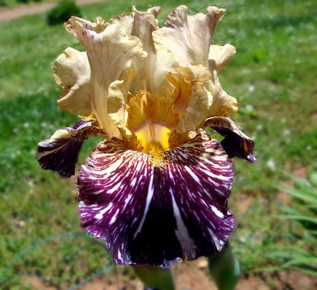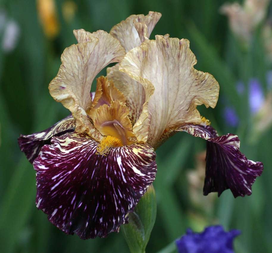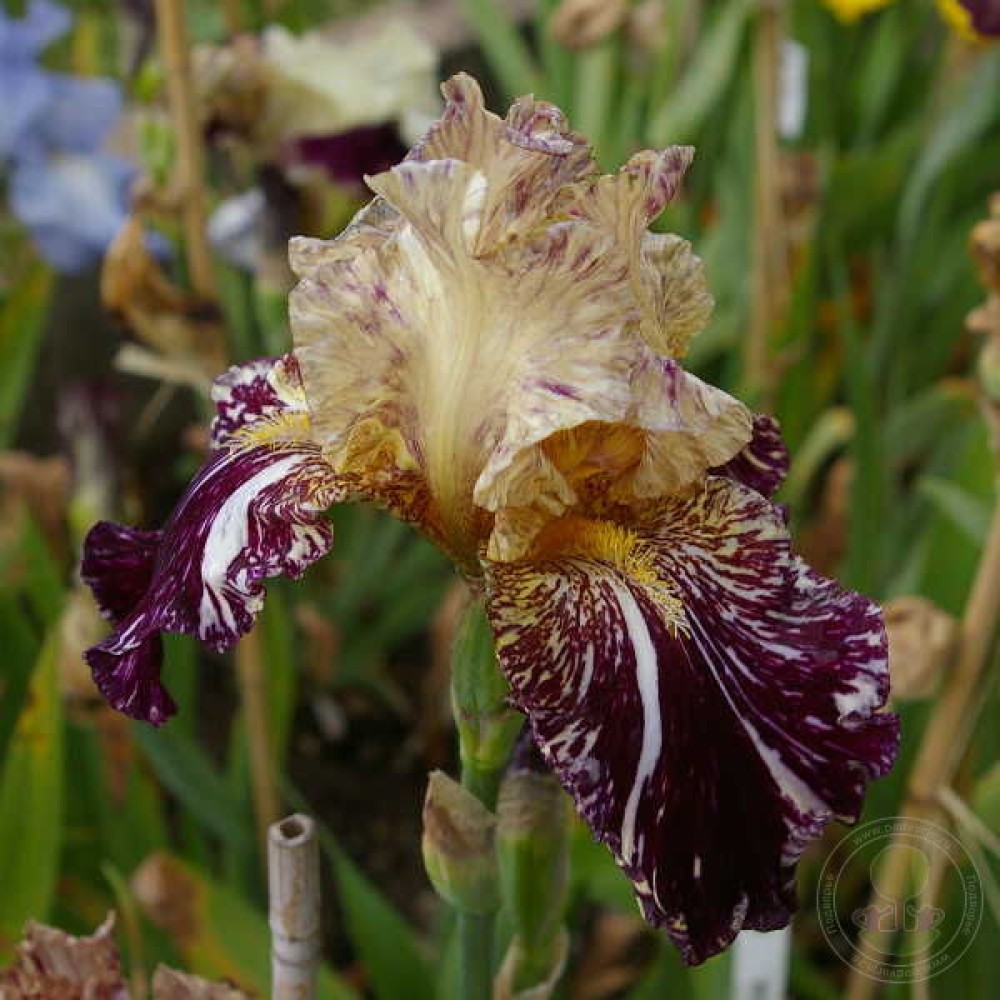 Стандарты карамельные со светло-серебристо-белыми полосками и пурпурными пятнами. Фолы фиолетовые с кремово-белыми штрихами и полосками. Бородка тёмно-жёлтая. Аромат тонкий.