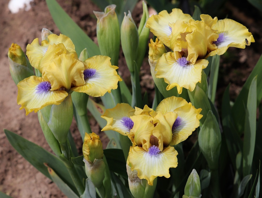 Большие матово-синие бороды на канареечно-желтом определенно «делают» Hit the Jackpot. Белое пятно под бородой и вокруг нее только усиливает контраст. Потрясающе красиво на клумбе!