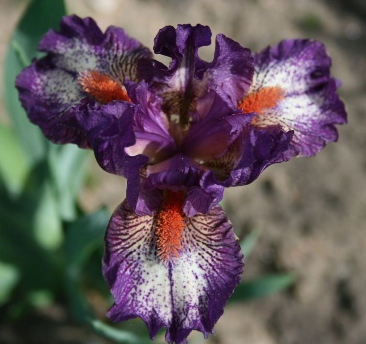 Светлый розово-сиреневый румянец по плечикам цветка, бородки — бело-мандариновые.