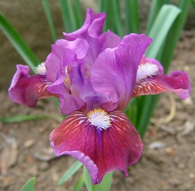 Стандарты — фуксиево-фиолетовые. Фолы — рубиново-красные с тонкой окантовкой цвета стандартов Бородки — золотистые со светло-фиолетовыми кончиками.