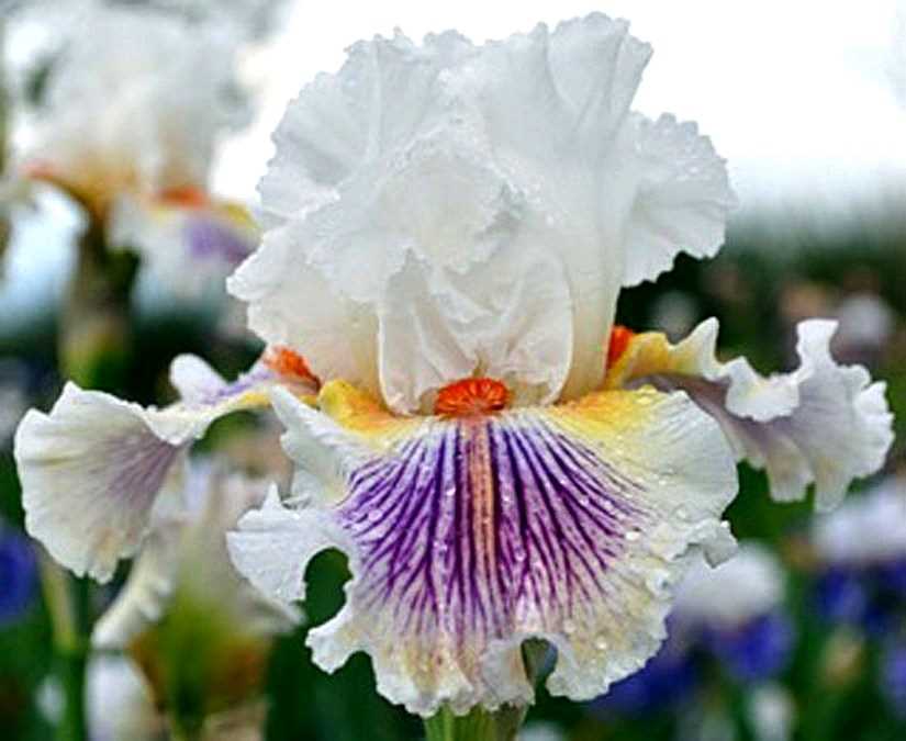 Стандарты медово–кремовые. Фолы кофейно-кремовые, с более темными коричневыми прожилками. Бородка оранжевая. Крупный, супер гофрированный и кружевной. Очень нарядный цветок!