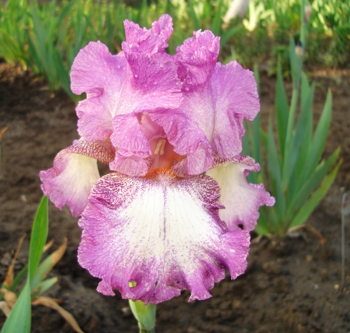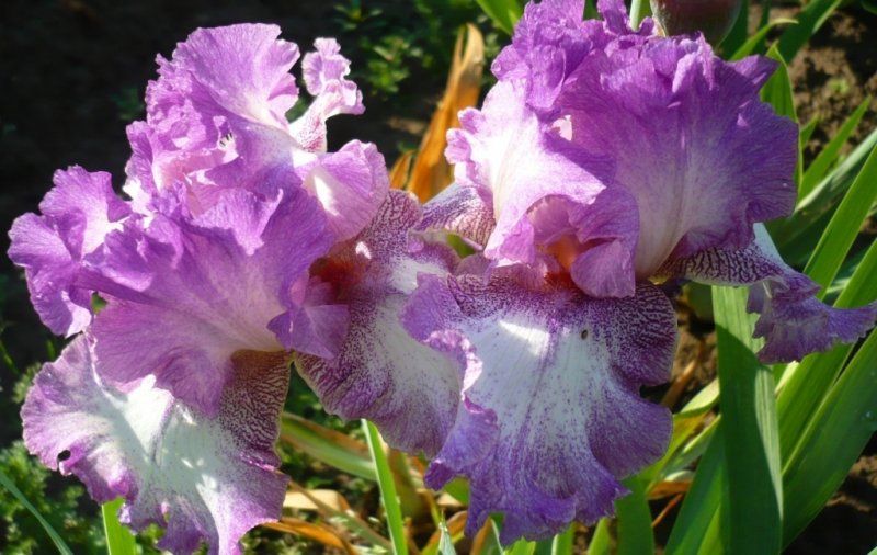 Фолы белые с розовато-фиолетовыми краями и такого же цвета крап, более тёмный у оснований, бородки — коралловые с бледно-фиолетовыми кончиками.