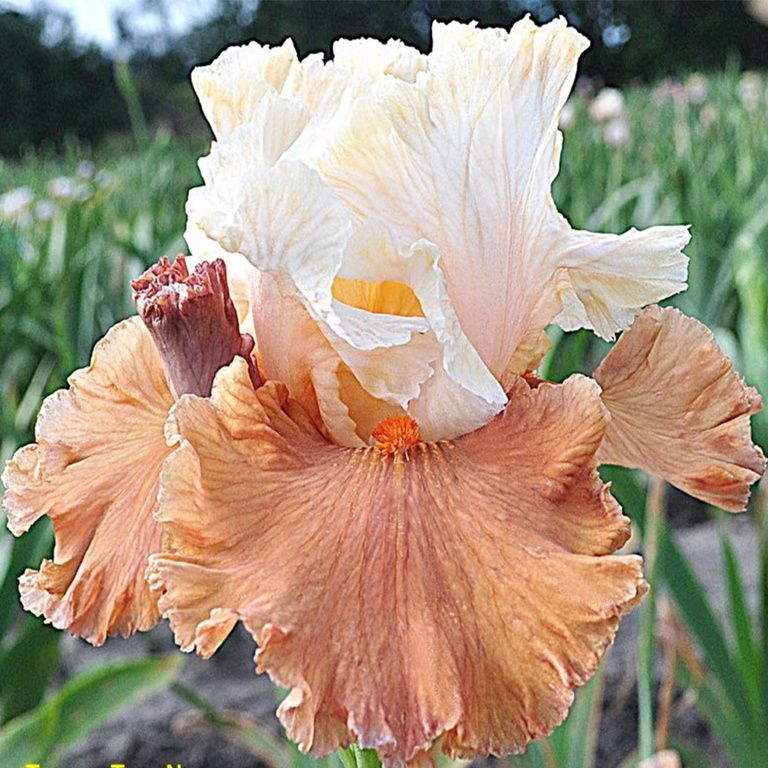 МЕЛКОДЕЛЕНЧАТЫЙ! Теплые кремовые стандарты с переходом в персиковые у основания, лососевые фолы с ярко оранжевыми бородками