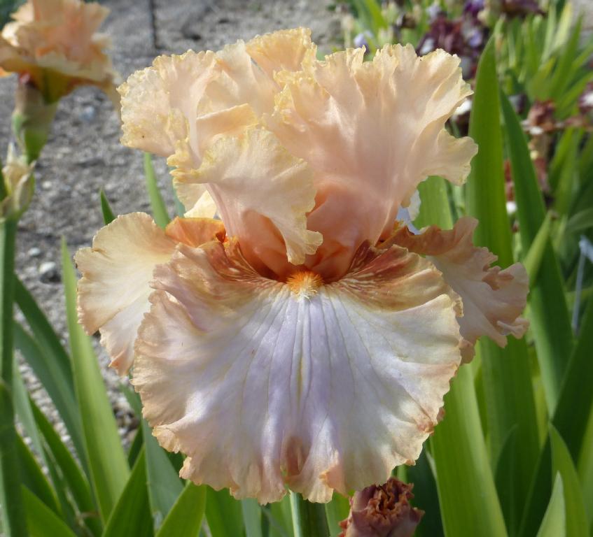 Огромный, очень кружевной оранжевый цветок с фиолетовым оттенком на фолах.