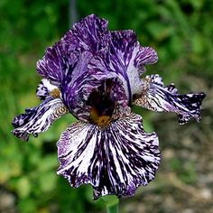 Пурпурно-чёрный с серебристыми и белыми полосками и брызгами по всему цветку.