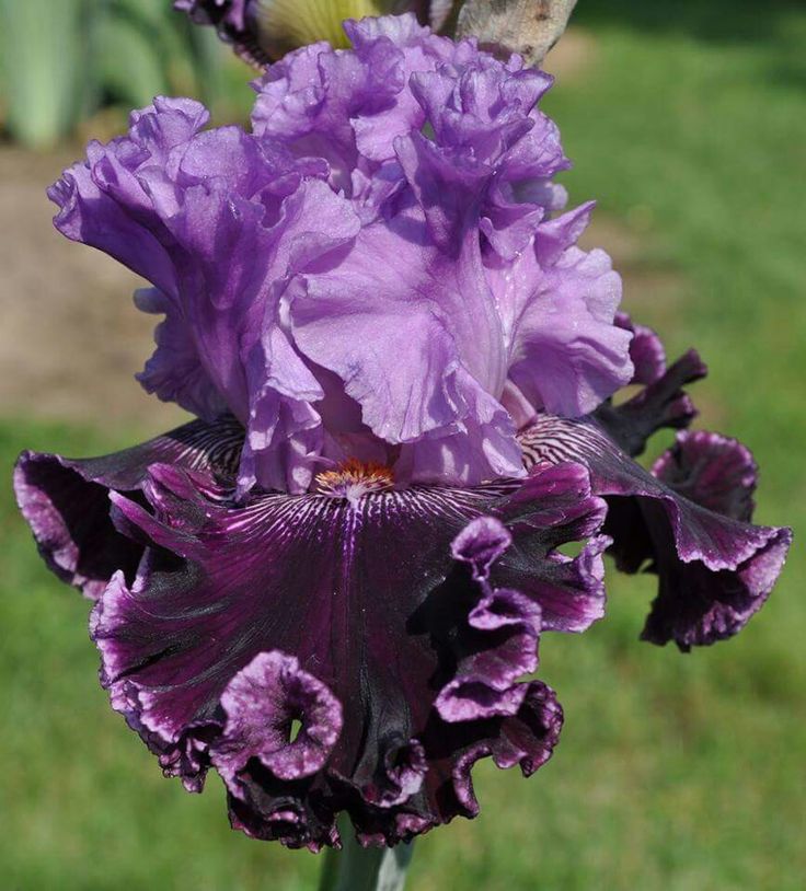 Фолы бархатные, фиолетово-черные с каймой цвета стандартов, парящие, широкие, перекрывающиеся.