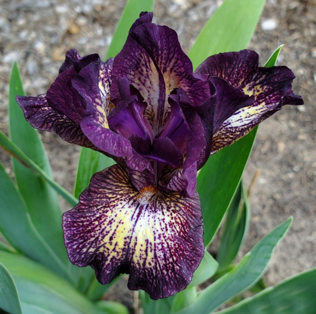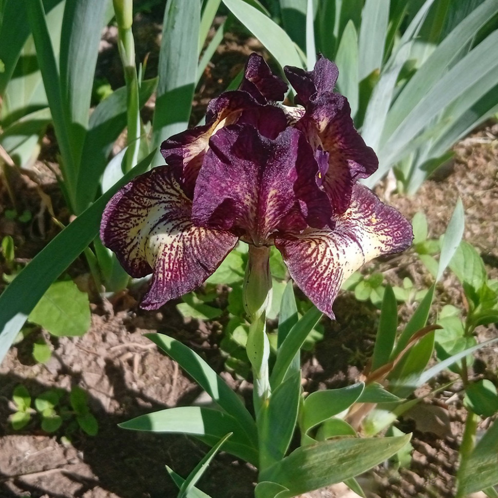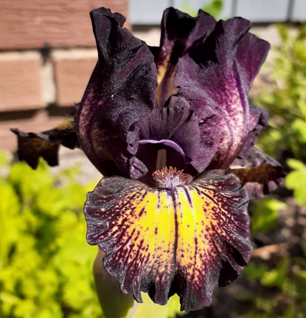 Борода кремовая, темно-оранжево-красные кончики.