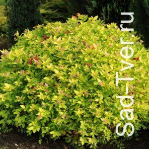 Описание: Листопадный кустарник высотой -0,5-0,6 м, диаметр кроны 0,8-1,2 метра. Крона плотная, округлая, компактная. Цветение в июне — июле розоватыми цветками, собранными в небольшие щитковидные соцветия. Листья мелкие, золотисто-желтые. Осенью окрашивается в оранжевые оттенки. Сорт карликовый. Растет медленно.