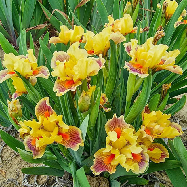 Стандарты — насыщенно-желтые. Фолы — цвета бургундского вина со сплошным жилкованием и каймой цвета стандартов. Бородка — ярко-оранжевая. Прекрасный колор!